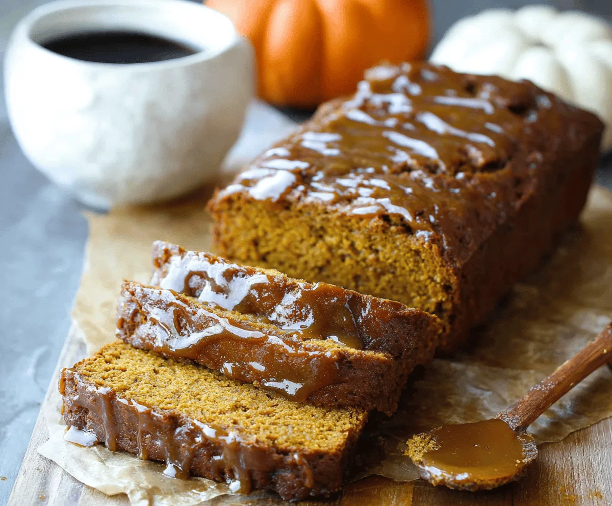 This pumpkin bread takes about 15 minutes to prepare, around 55–65 minutes to bake, plus some cooling time before glazing. So, set aside about 1 hour and 30 minutes from start to finish.