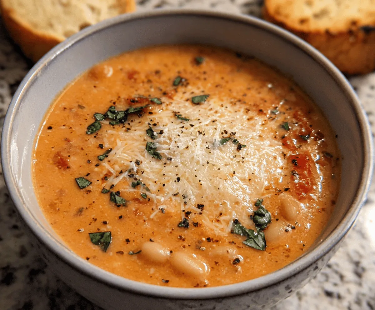 Creamy Parmesan Tomato and Cannellini Bean Soup