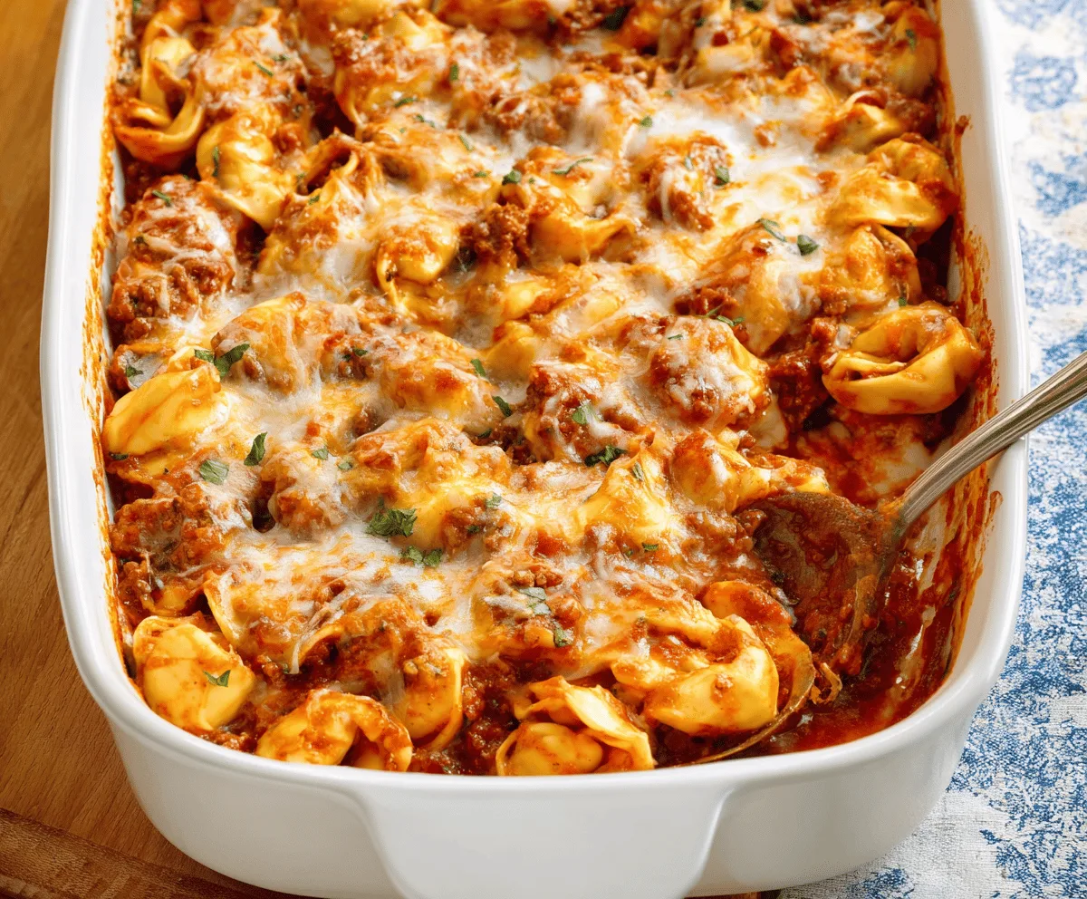 Simmering the beef with the sauce for a few minutes helps blend flavors. Don’t forget to drain cooked tortellini well to avoid watery bake. When layering, distribute the cheese evenly so it melts smoothly and covers every bite.