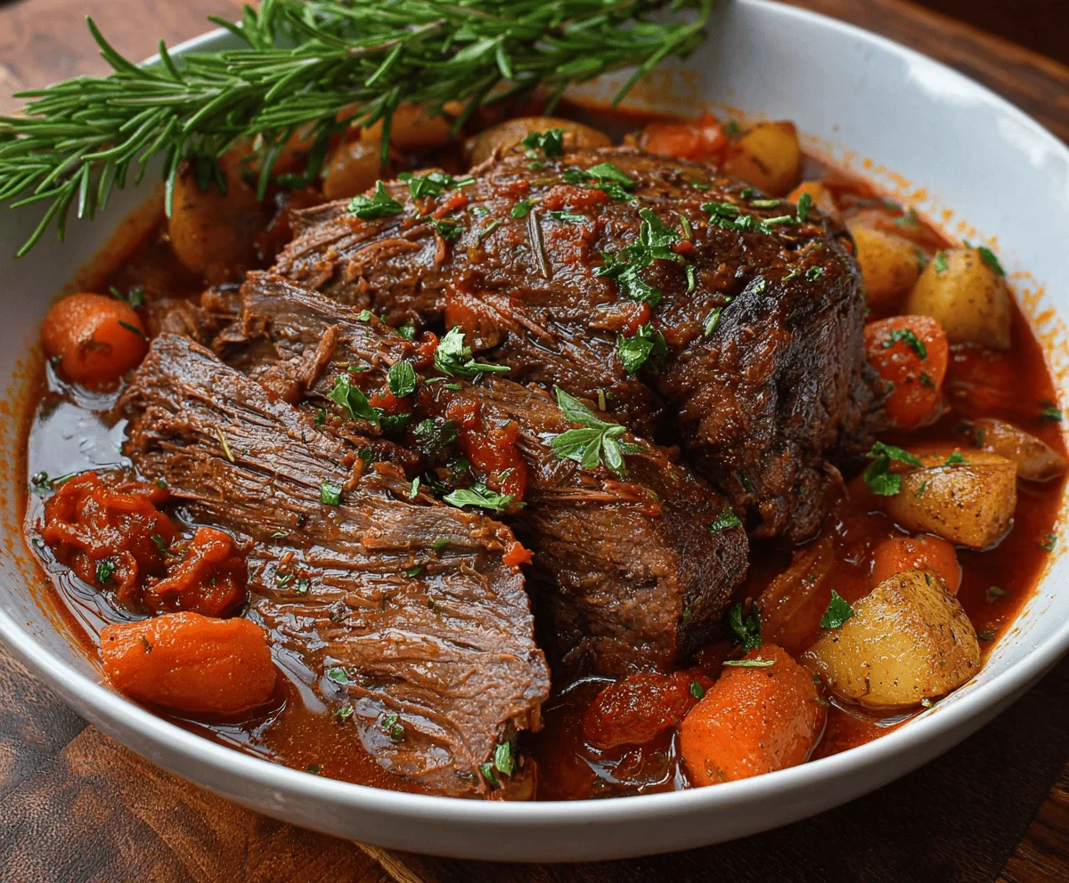 I love making this dish on a lazy weekend when there’s plenty of time to let the flavors develop while it simmers slowly on the stove or in the oven. It fills the whole kitchen with the warm smell of garlic and herbs, and I always end up sneaking tastes straight from the pot! One tip I like to share is to use a good-quality roast and be patient with the cooking time—it really makes a difference in how tender and flavorful the meat turns out.