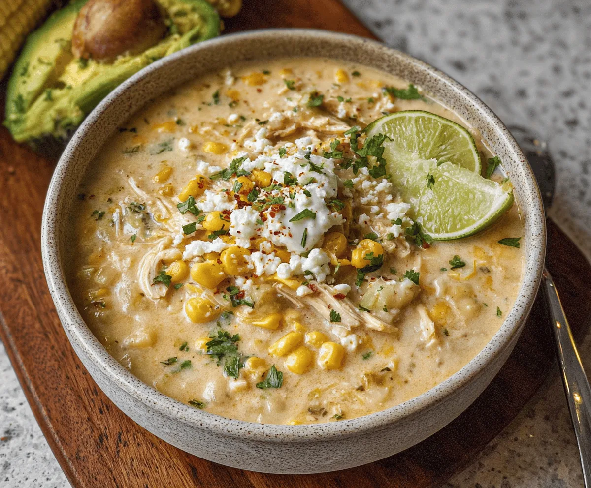 Mexican Street Corn White Chicken Chili is a fun twist on traditional chili that’s creamy, cozy, and full of bright flavors. It combines tender chicken, sweet corn, and a touch of spice with creamy white beans and a hint of zesty lime. This dish feels like a warm hug with a little Mexican street food flair, making it perfect for cooler days when you want something comforting yet lively.