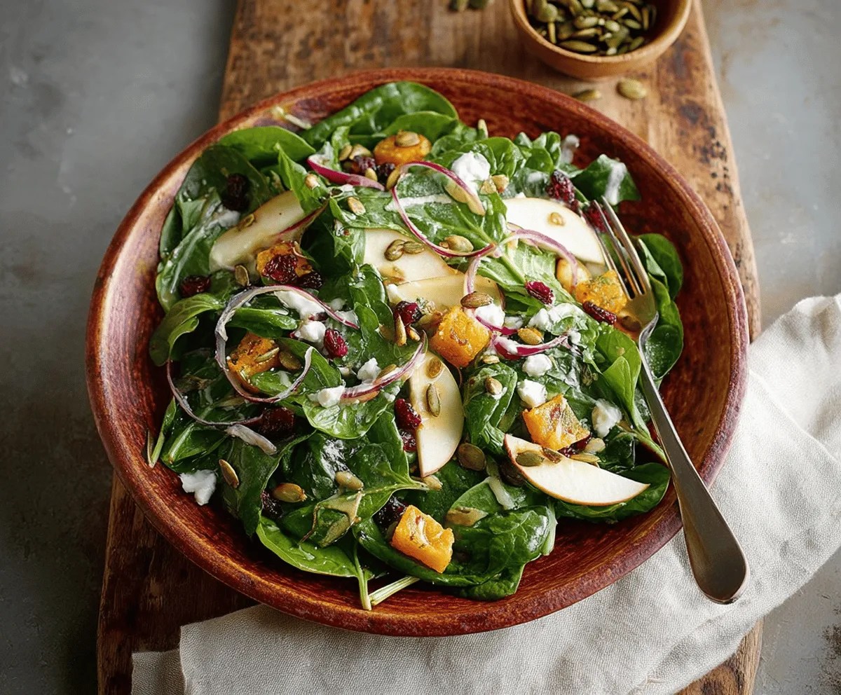 This Pumpkin Seed & Apple Cider Salad is a fresh and crunchy treat that brings together the crispness of leafy greens with the nutty bite of roasted pumpkin seeds and the sweet tang of apple cider dressing. It’s the kind of salad that feels like fall in every bite, with flavors that are both bright and comforting.