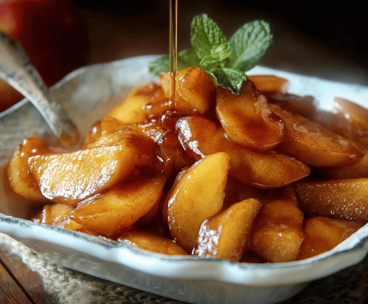 Remove the skillet from heat and stir in the vanilla extract for a lovely finish. Transfer the apples to a serving dish, drizzle with maple syrup if you like, and garnish with fresh mint leaves. Serve warm as a tasty side, over breakfast pancakes or waffles, or even with a scoop of ice cream for dessert.