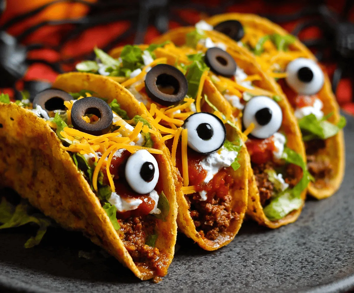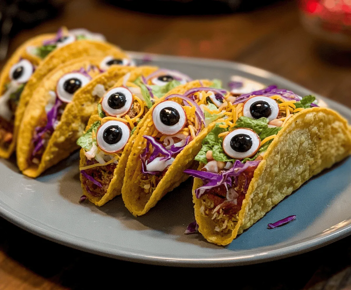 I love making these tacos for parties because they always get people smiling and curious. The best part is you can keep the filling simple or go wild with all your favorite taco toppings—ground meat, beans, cheese, lettuce, and tomatoes all work great. Placing sliced olives as eyeballs on little dollops of cream cheese or sour cream turns an ordinary taco into a conversation starter. It’s a simple trick that never fails to excite kids and adults alike.