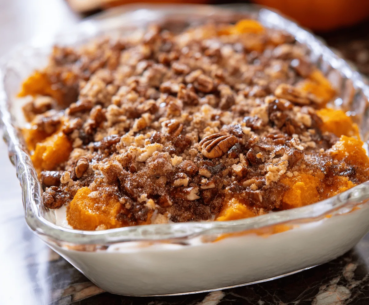 Sweet Potato Casserole is a classic comfort dish that brings together creamy, mashed sweet potatoes topped with a crunchy, buttery pecan and brown sugar crust. It’s the perfect mix of soft and crispy textures, with just the right amount of sweetness that makes it feel like a special treat at any meal.