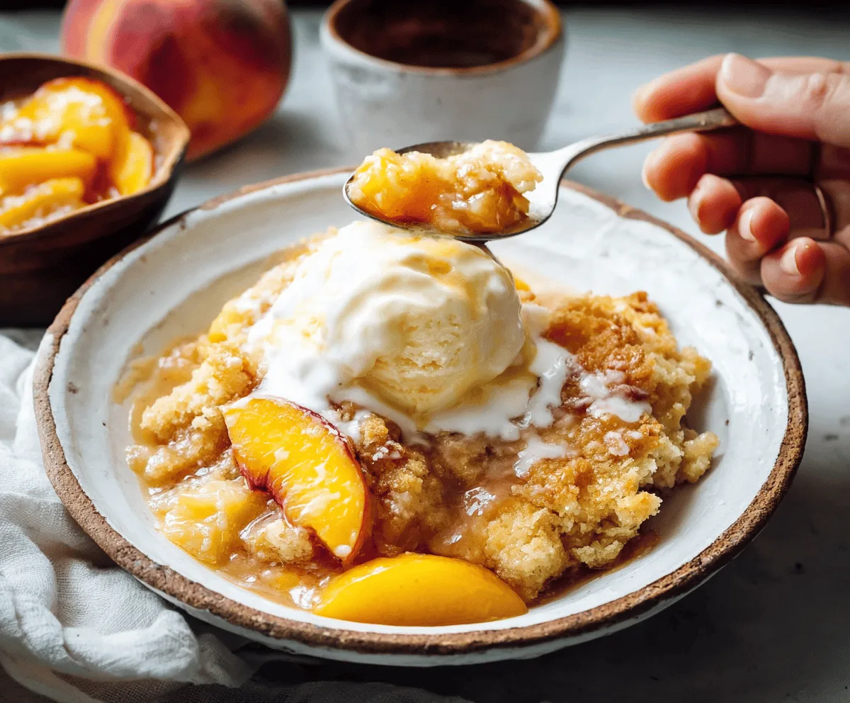 My favorite way to serve peach cobbler is warm straight from the oven, paired with a scoop of cold vanilla ice cream. The contrast of hot and cold is just unbeatable. It’s perfect for sharing with family or friends on a quiet weekend or for celebrating a special moment without any fuss. Whenever I serve it, people always ask for seconds—that’s how you know it’s a hit!