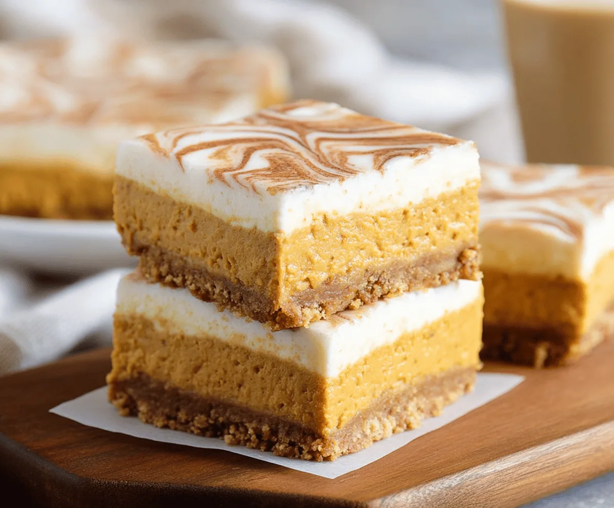 I love making these bars when the leaves start to change because the house fills with the smell of cinnamon and nutmeg, which always makes me feel cozy. A little tip I have is to let them chill completely before cutting—they hold their shape so much better, and you get those nice clean edges that make them look extra inviting.
