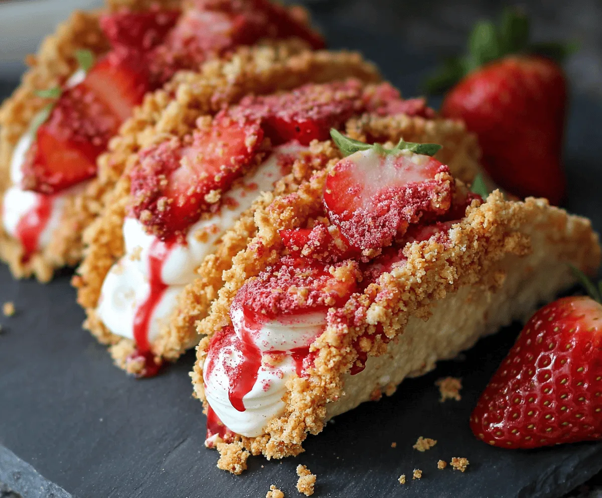 Enjoy your creamy, crunchy Strawberry Crunch Cheesecake Tacos – a fresh and fun dessert everyone will love!